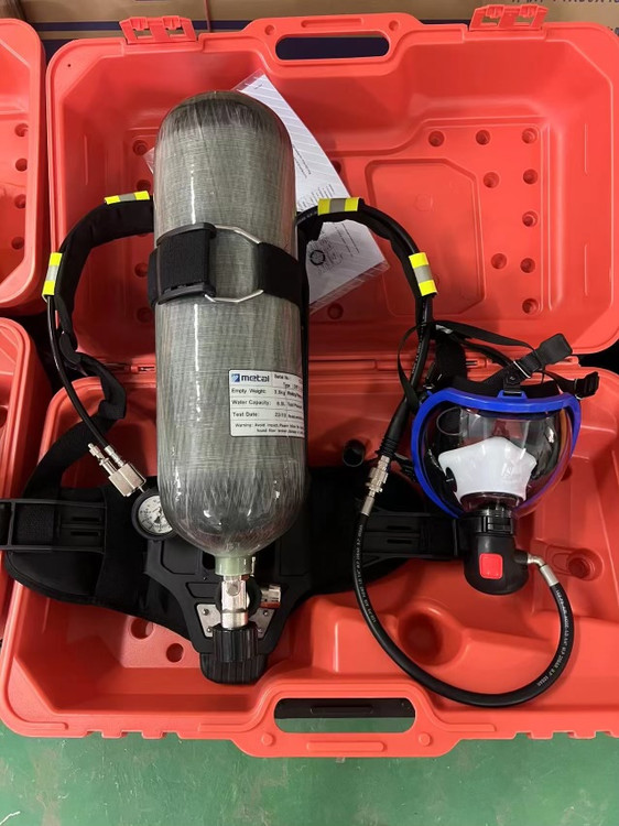 سیلندر کامپوزیت۶/۸لیتر برندMETAL و شیرسوپاپ اطمینان دارای ماسک و کوله به همراه درجه فشار سنج ساخت کشور چین