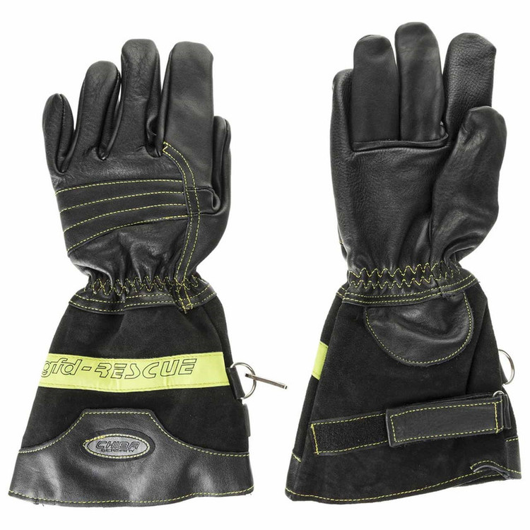 دستکش عملیاتی آتش نشانی چیبا مناسب برای استفاده در تمامی عملیات های آتش نشانی و راحتی انگشتان در عملیات ، جنس رویه چرم و استر داخلی نومکس و پوشش تا بالای مچ دست و چرم دوبل در کف دست برای مقاومت بیشتر در انجام عملیات و دوخت فنری انگشت برای انعطاف بهتر